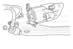 1. Connect the cable and the connector. Make sure the starter cable crimped side of the ring terminal faces away from the starter when you connect it.