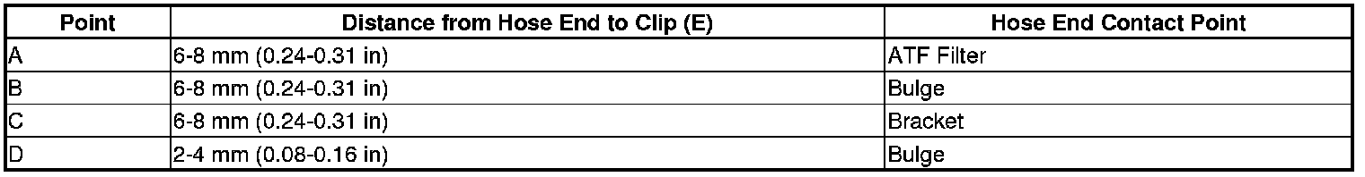 1. Install the ATF hoses over the ATF lines with the clips at appropriate points in reference to the following list.