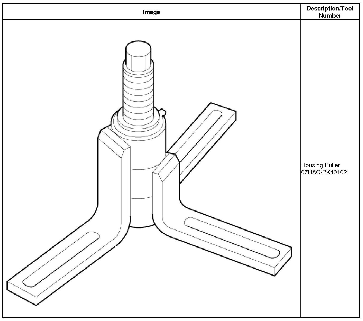 NOTE: If the top arm of your housing puller is too short, replace it with 205 mm housing puller arm 07SAC-P0Z0101.