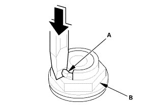 3. Using a chisel, cut the lock tab (A) of the locknut (B).