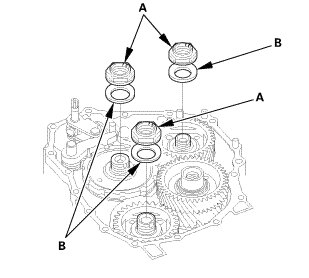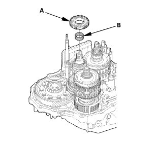 17. Place a spacer (A) on the countershaft (B).