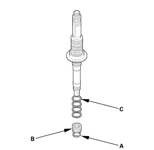 3. Remove the set ring (A), the needle bearing (B), and the sealing rings (C).