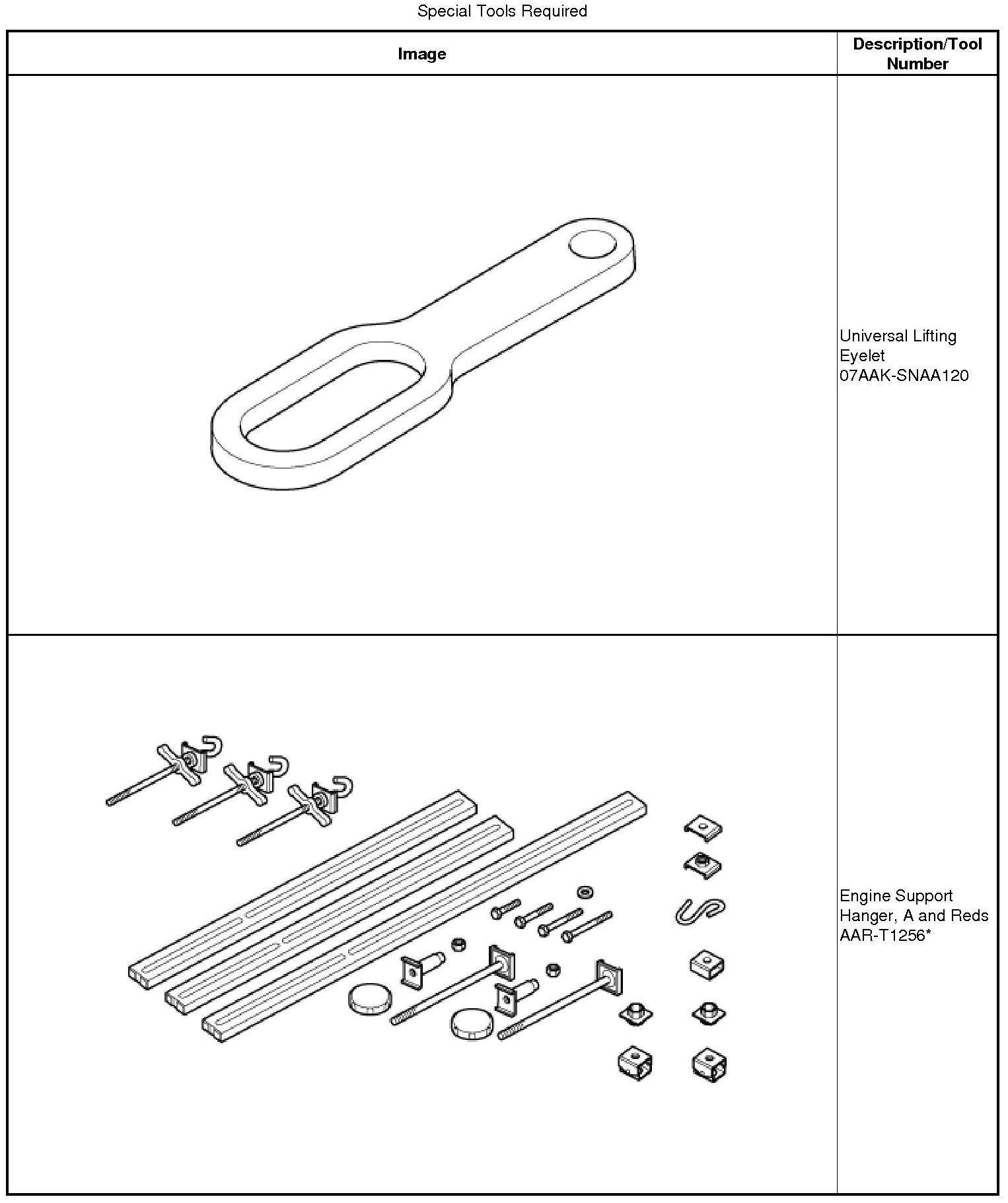 * Special tool Reds engine support hanger AAR-T1256 must be used with the side engine mount installed.