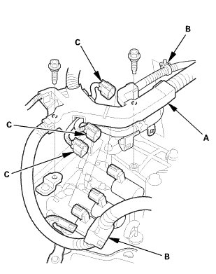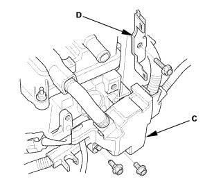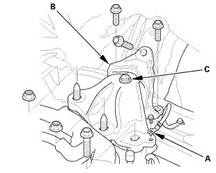 NOTE: Do not remove the TORX bolt (C) from the transmission mount. If the TORX bolt is removed, the transmission mount must be replaced as an assembly.