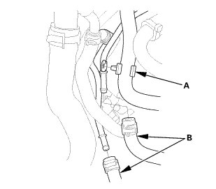 7. Turn the end of the ATF hoses up to prevent ATF from flowing out, then plug the hoses and lines.