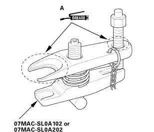 2. Apply grease to the ball joint remover on the areas shown (A).