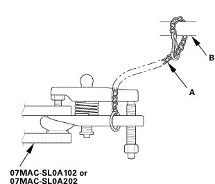 * Fasten the safety chain (A) securely to a suspension arm or the subframe (B).