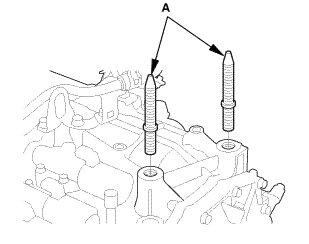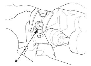4. Tighten the wing nut (A) by hand, and lift and support the engine/transmission.