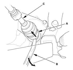 * Do not pull on the driveshaft (C), or the inboard joint may come apart. Pull the inboard joint straight out to avoid damaging the oil seal.