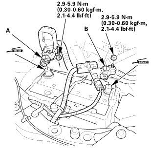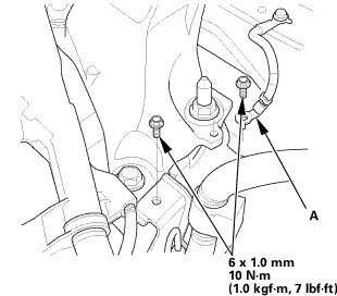 1. Tighten the transmission mount bracket mounting bolt and nuts (A).