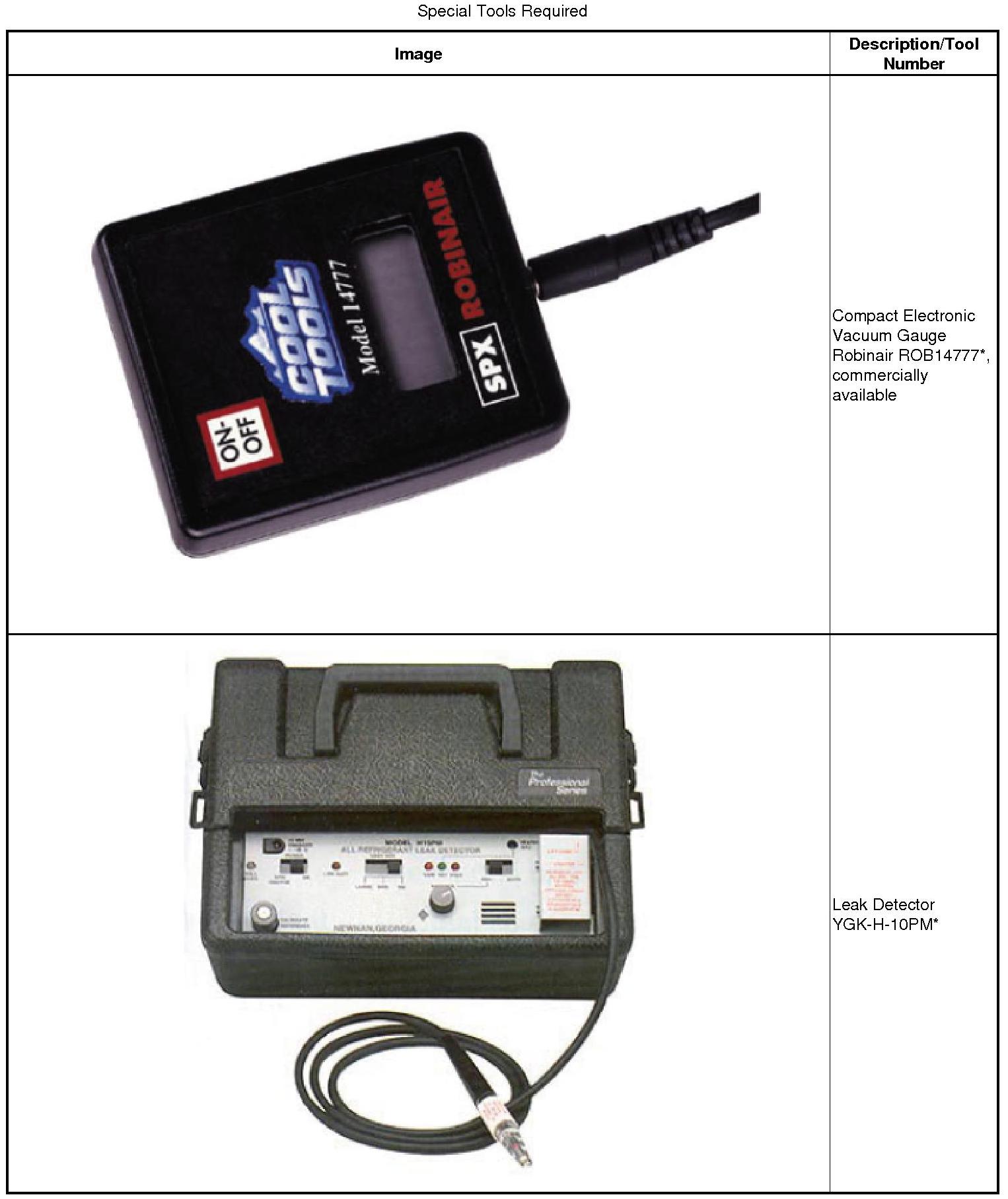 * Check the system for leaks using an R-134a refrigerant leak detector with an accuracy of 14 g (0.5 oz) per year or better.