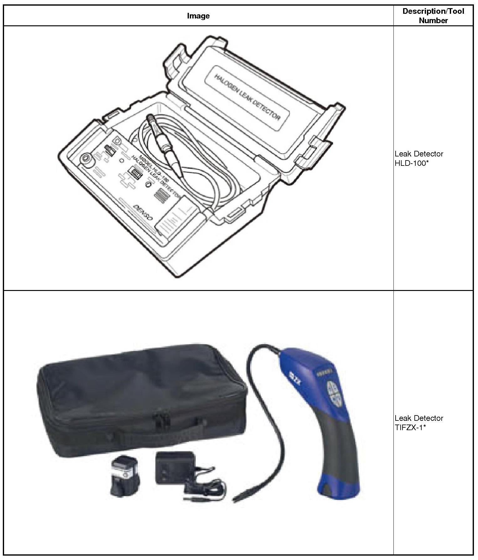 * Halogen leak detectors are sensitive to chemicals: windshield washing solutions, solvents/cleaners, and some vehicle adhesives. Keep these chemicals out of the area when doing leak detection.