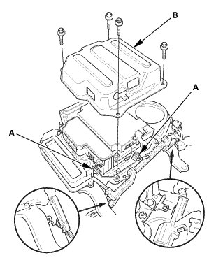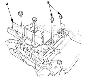2. Remove the cover (A) and the bolts (B).