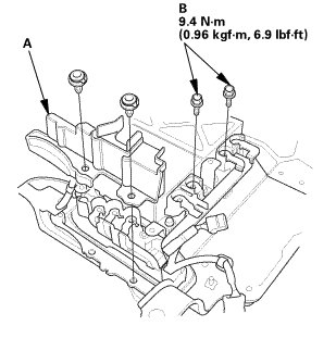 16. Install the cover (A) and the bolts (B).
