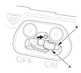 2. Release the rear center seat belt (A) from the rear center seat belt guide (B).