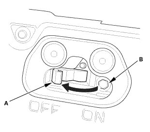 4. Turn the battery module switch (A) OFF, then check that the bolt (B) is showing.
