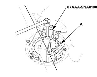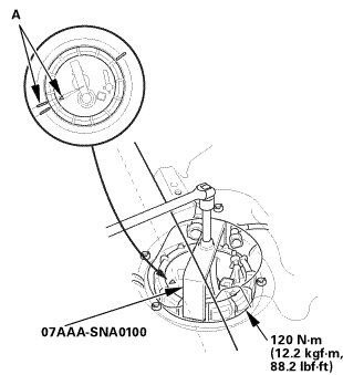 3. Tighten a new locknut (A) by hand holding the fuel tank unit vertically.