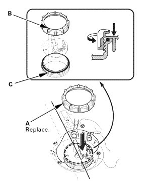 NOTE: To prevent a fuel leak, check the base gasket visually or by hand to make sure it is not pinched.