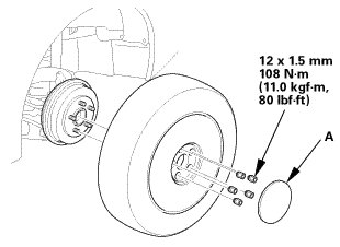 NOTE: Before installing the wheel, clean the mating surfaces between the brake drum and the inside of the wheel.