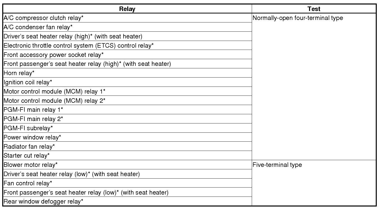 Use this chart to identify the types of the relay, then do the test listed for it.