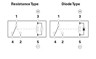 * There should be continuity between terminals No. 1 and No. 2 when battery power is connected to terminal No. 3, and battery ground is connected to terminal No. 5.