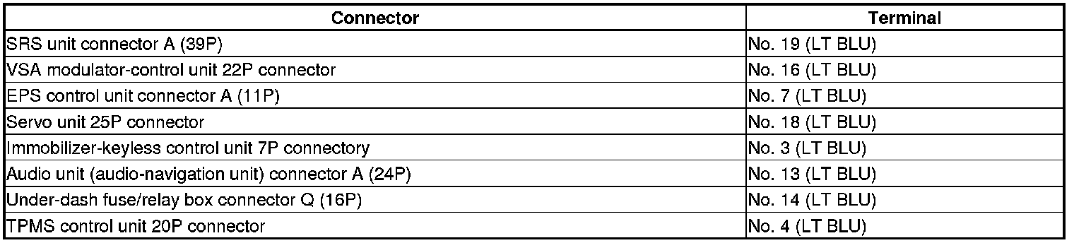 -NO- Repair a short in the K_LINE wire between the DLC No. 7 and SRS unit, VSA modulator-control unit, the EPS control unit, the servo unit, the immobilizer-keyless control unit, the audio unit, audio-navigation unit, or the driver's under-dash fuse/relay box.