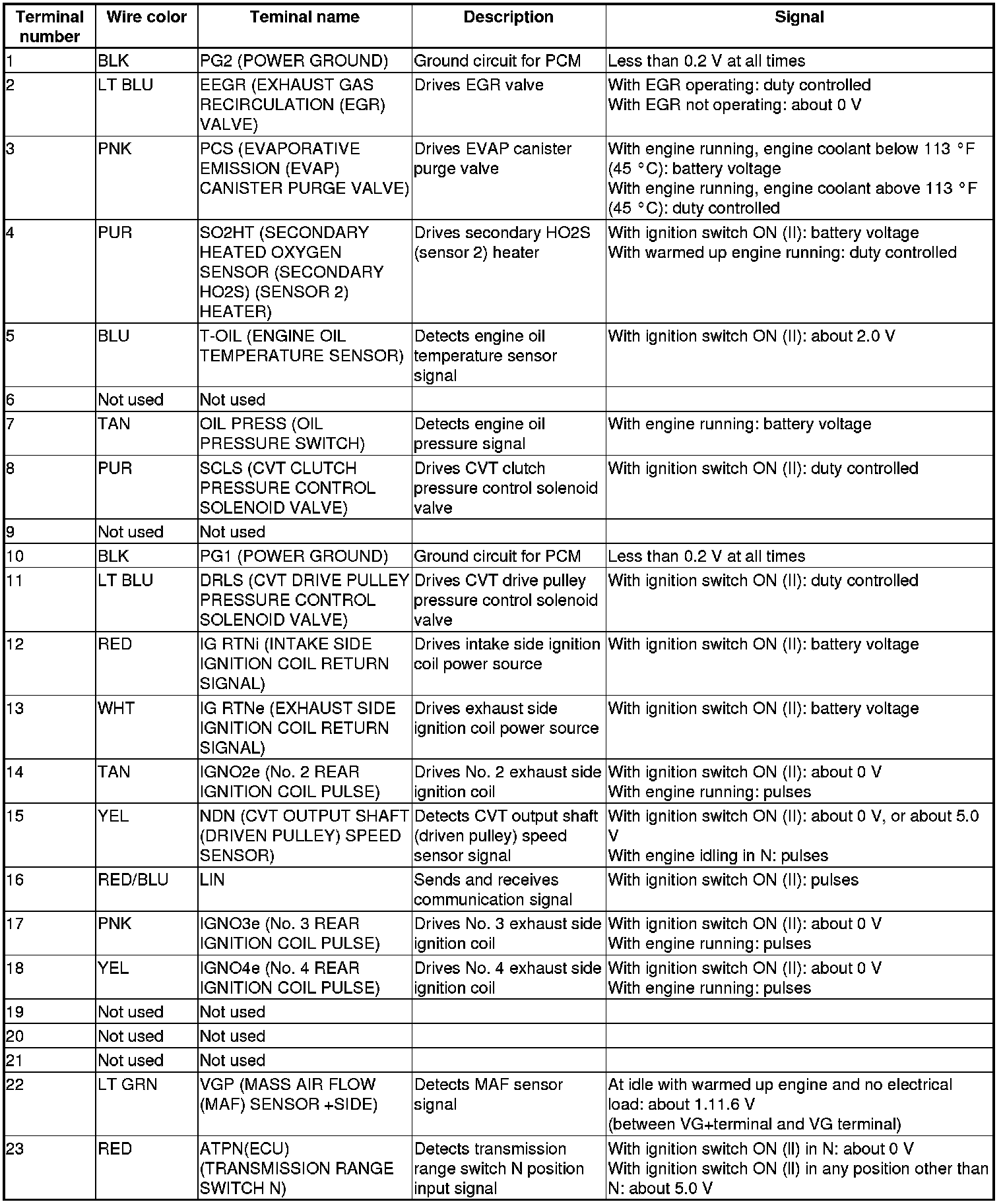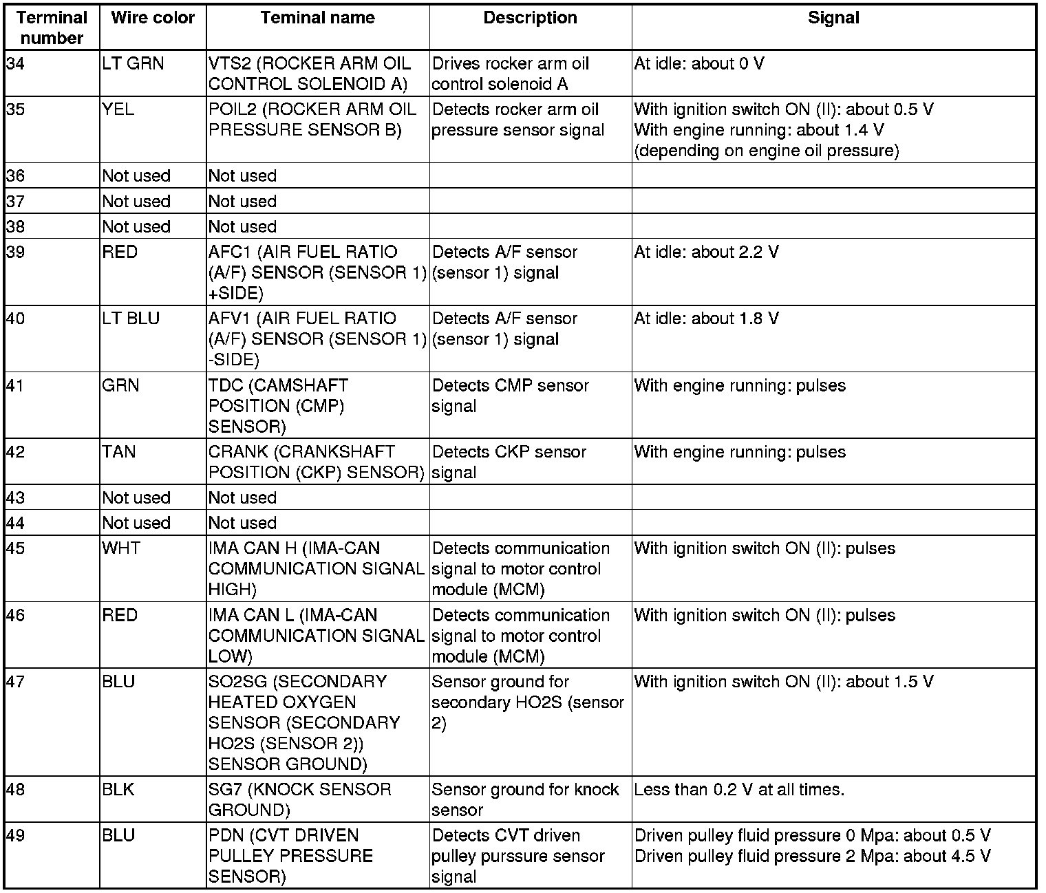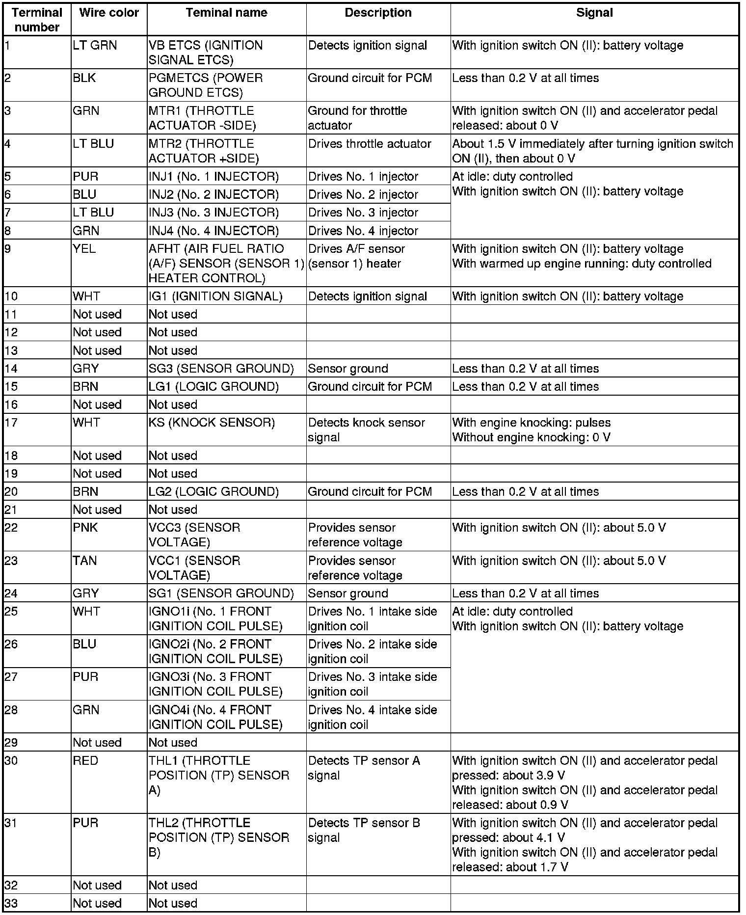 Pinout Values and Diagnostic Parameters