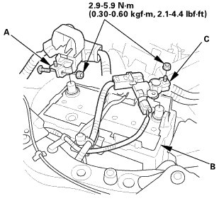 3. Connect the negative cable and battery sensor (C) to the 12 volt battery.