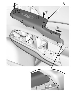 1. Remove the power window switch panel (A).