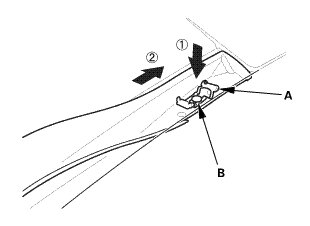 4. Lightly push the A-pillar trim (B) into place, then install the trim.