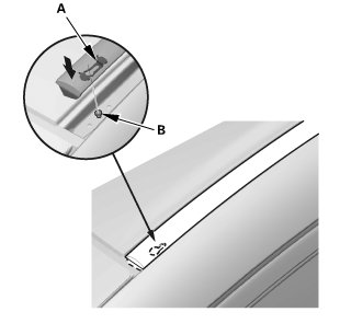 2. Pry up the roof molding (B) with a trim tool.
