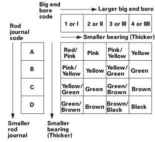 4. Use the big end bore codes and the rod journal codes to select appropriate replacement bearings from the following table.