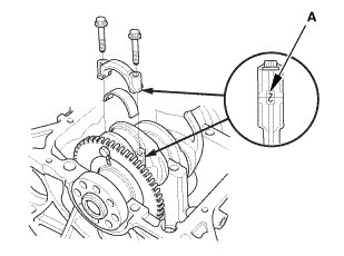 3. Reinstall the bearing half and the cap, then torque the bolts to 20 Nm (2.0 kgfm, 15 lbfft) +90 °.