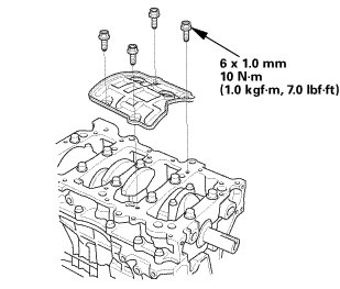 1. Remove all of the old liquid gasket from the oil pan mating surfaces, the bolts, and the bolt holes.