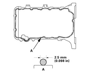 * Apply a 2.5 mm (0.098 in) diameter bead of liquid gasket along the broken line (A).