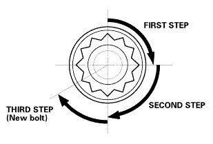 NOTE: Remove the cylinder head bolt if you tightened it beyond the specified angle, and go back to step 5 of the procedure. Do not loosen it back to the specified angle.
