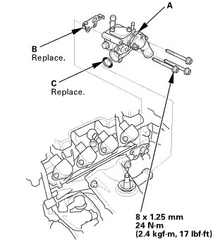 * Apply a 5 mm (0.20 in) diameter bead of liquid gasket to the mating surfaces (C).
