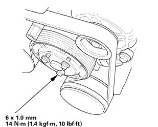 NOTE: Tighten the crankshaft pulley bolt. Do not use an impact wrench.