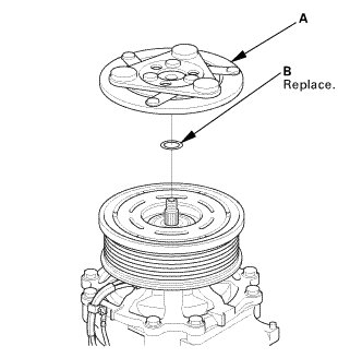 * After reinstallation, cycle the A/C clutch approximately 20 times by running the engine at 1,500-2,000 rpm and setting the A/C system to MAX A/C mode. This procedure seats the clutch sliding surfaces, and increases clutch torque capacity.