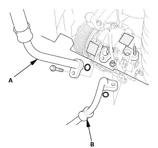3. Connect the suction hose (A) with a new O-ring (B) that is lubricated with clean refrigerant oil.