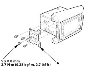 1. Connect the connectors, then install the audio-navigation unit (A).