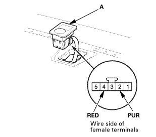 3. Measure the voltage between (+) probe on terminal No. 2 and (-) probe on terminal No. 4 with the connector connected.