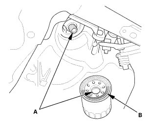 3. Inspect the threads (A) and the rubber seal (B) on the new filter.