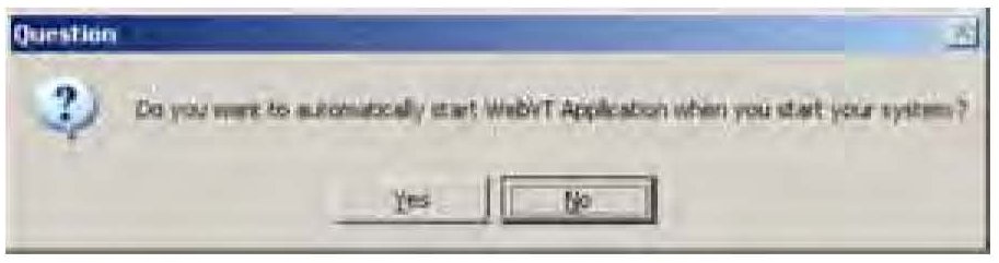 10. The InstallShield Wizard asks if you want to automatically start the WebVT application when you start your computer. Select Yes.