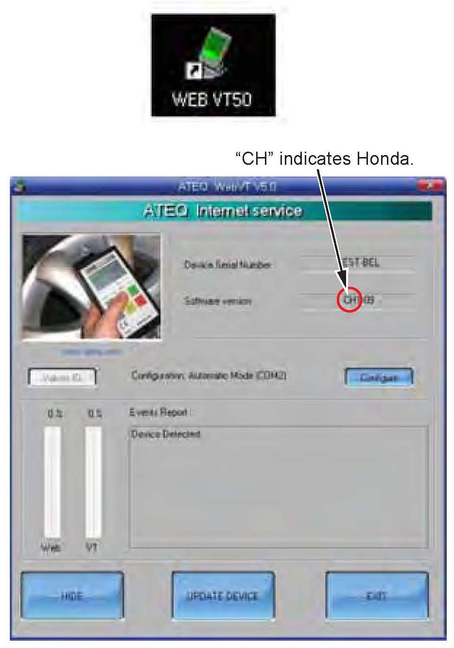 To order the VT55, or the USB connector, go to the Honda Tool and Equipment catalog. Go to the iN > SERVICE > Service Bay > Tool and Equipment Program, or call 888-424-6857.