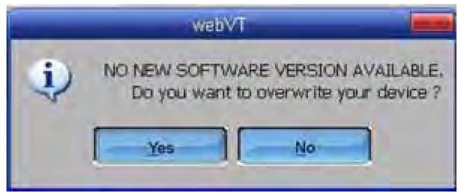 If no new software version is available, you'll see a message asking if you want to overwrite the existing software. Select No.