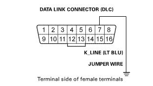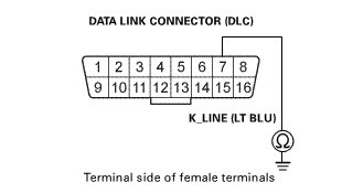 -NO- Repair a short in the K_LINE wire between the DLC terminal No. 7 and the SRS unit, the VSA modulator-control unit, the TPMS control unit, the EPS control unit, the immobilizer-keyless control unit, the audio unit, the audio-navigation unit, or the driver's under-dash fuse/relay box.