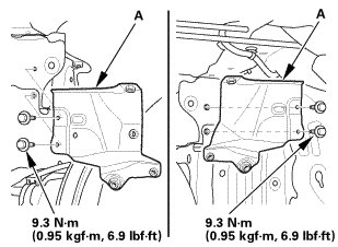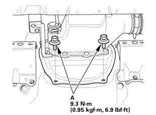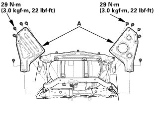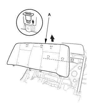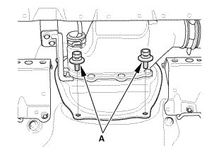 1. Remove the center seat belt buckle bolt (A) at the floor.