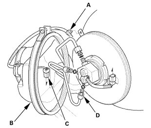 2. Install the fuel pipes (B) with new O-Rings (C) and the fuel joint duct (D).