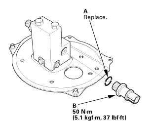 1. Apply silicone oil or polyalkyleneglycol (PAG) oil to a new O-ring (A), and carefully install it into its proper position.